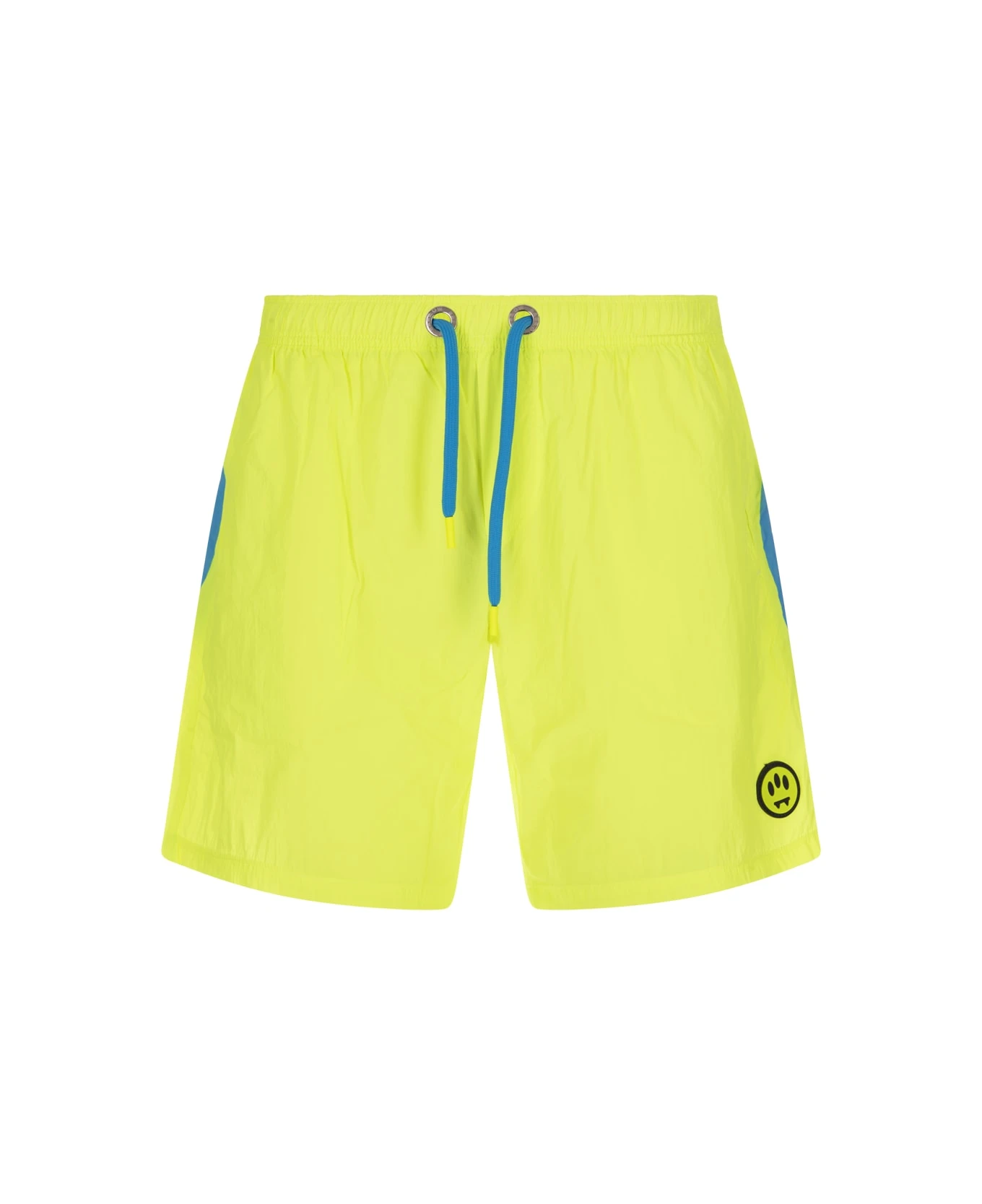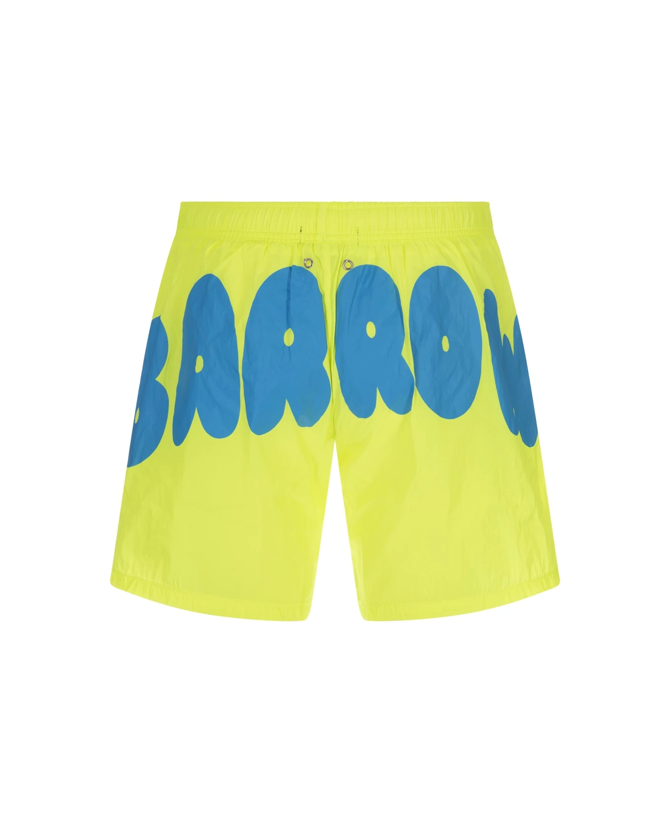 Barrow swim shorts made of fluo yellow nylon with elasticated waist, contrasting drawstring, logo patch on the front and contrasting Barrow logo print on the back.