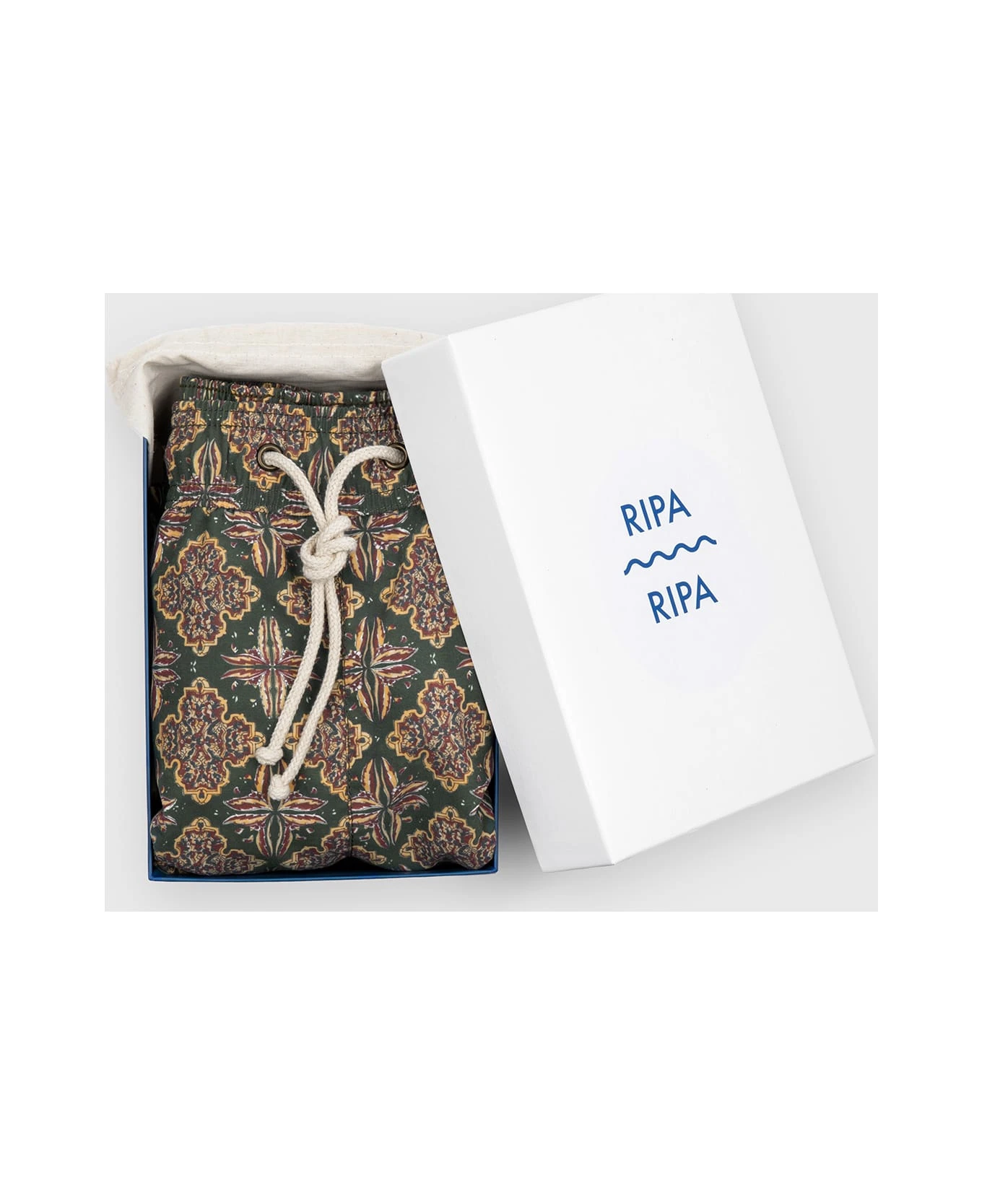 The classic swimsuit was redesigned for a more elegant, tailored look and a comfortable fit. Made from soft, brushed fabric that is quick-drying and has a distinctive cotton-feel. Tying-cord made from braided nautical rope in unbleached cotton. Pattern drawn by hand. Made in Italy.
