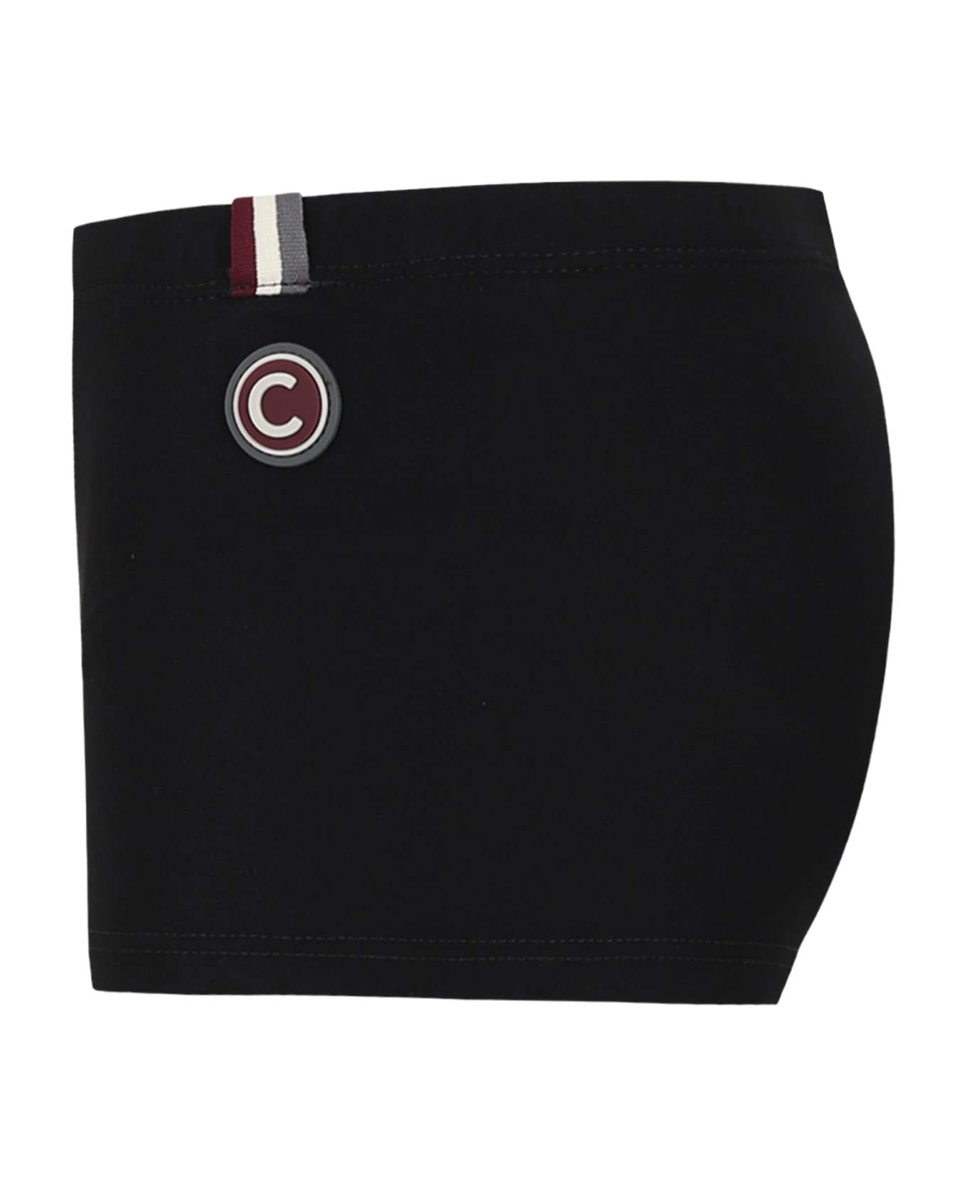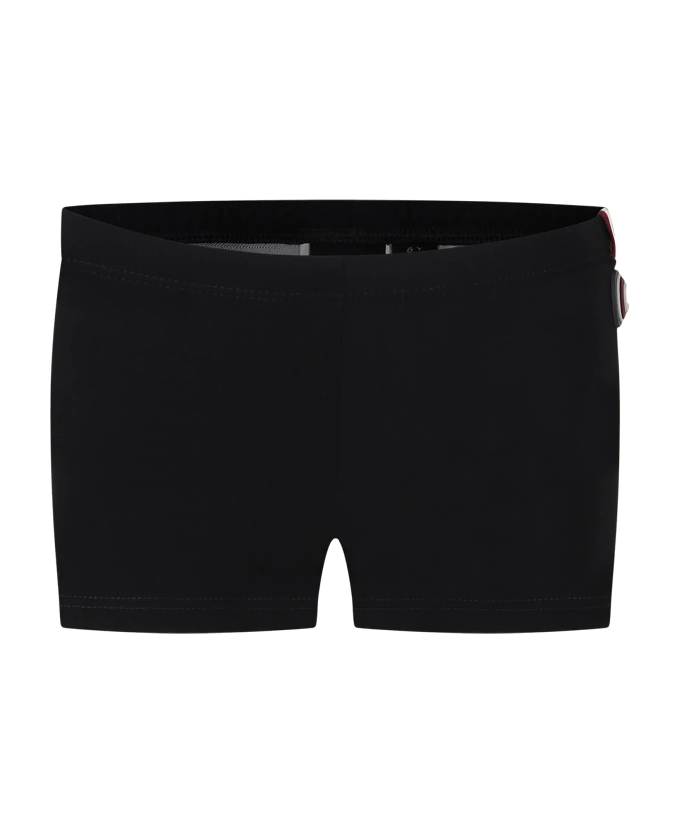 Black swim boxer with elastic waist. It is embellished with iconic rubberized logo on the front.