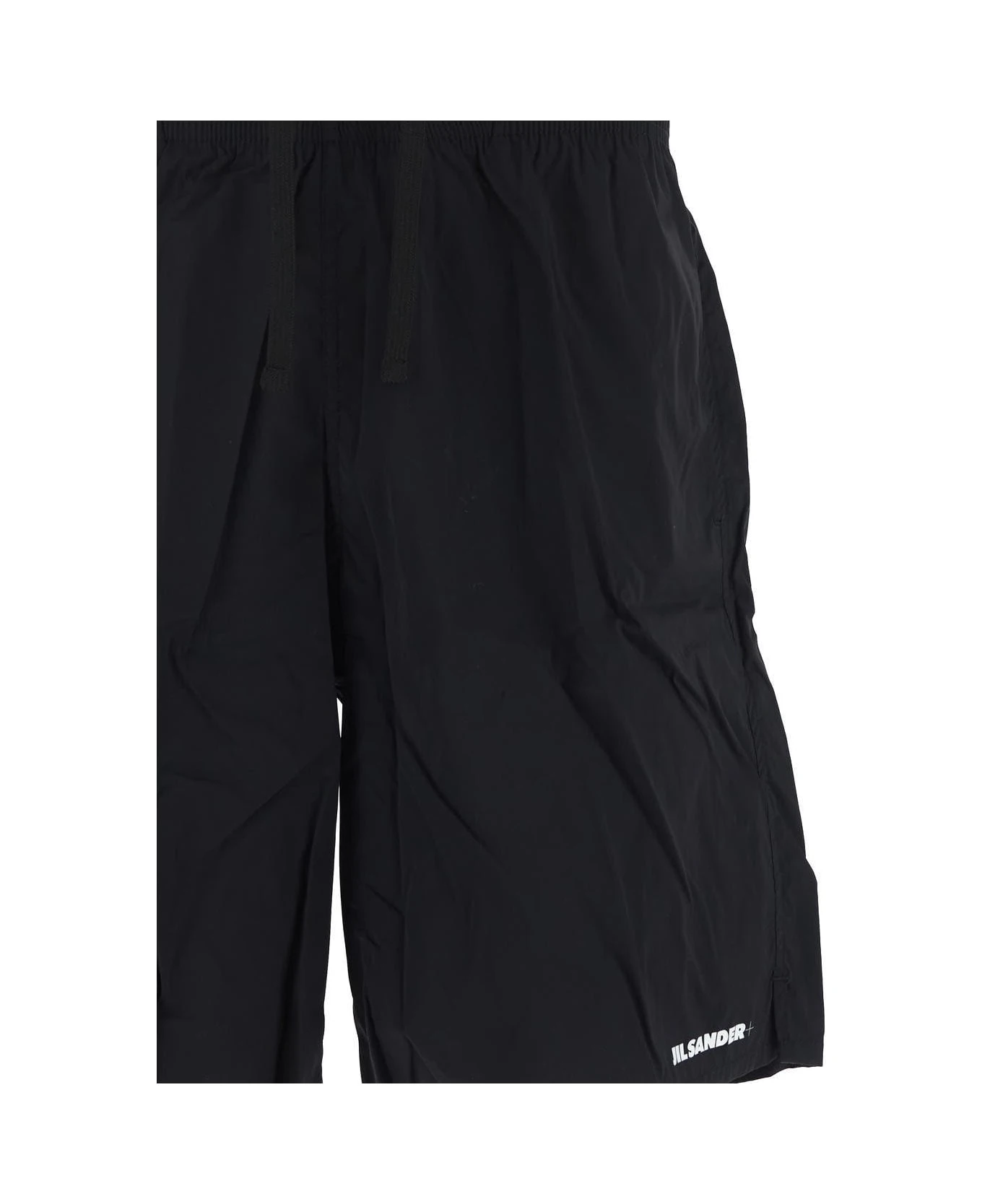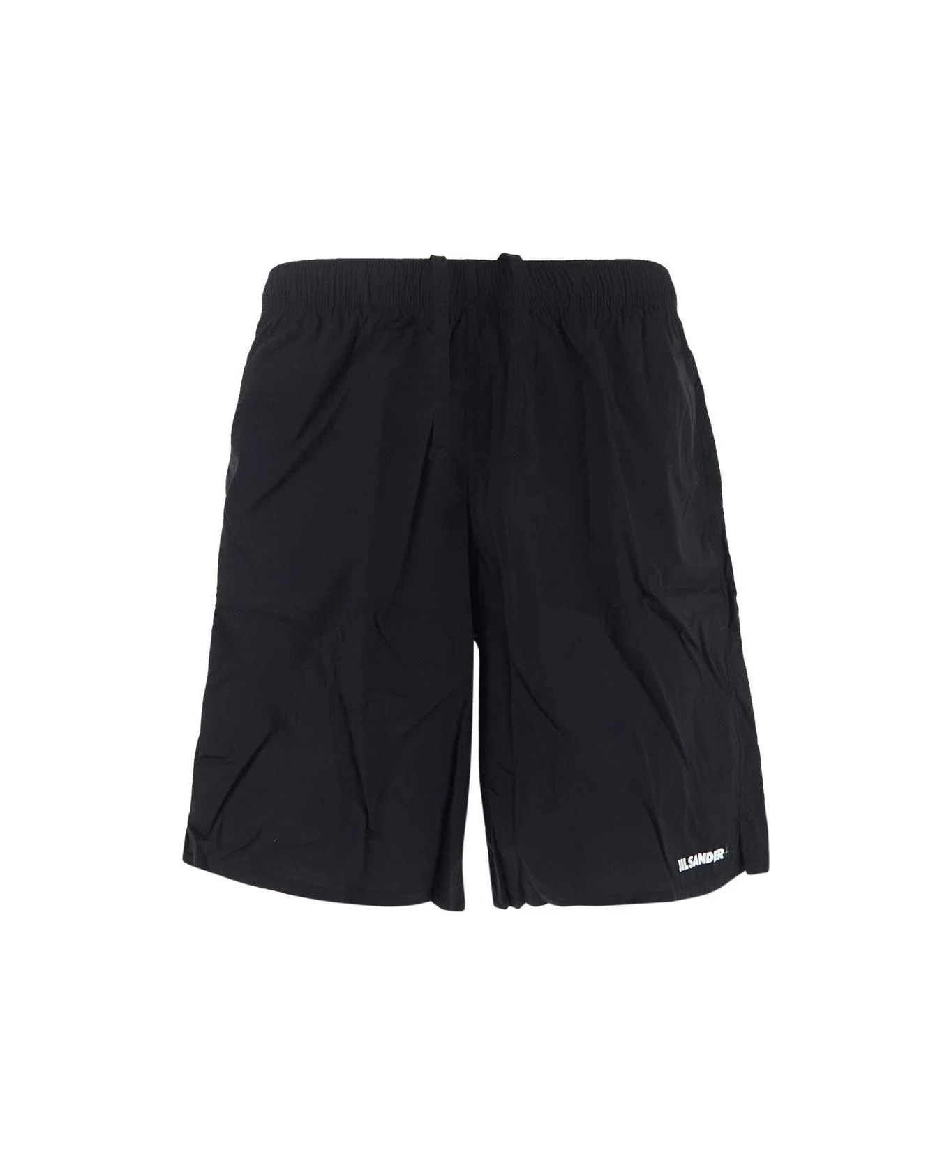 Jil Sander swim short in black polyamide with logo print. It features by elastic waistband, waist drawstrings and side pockets.