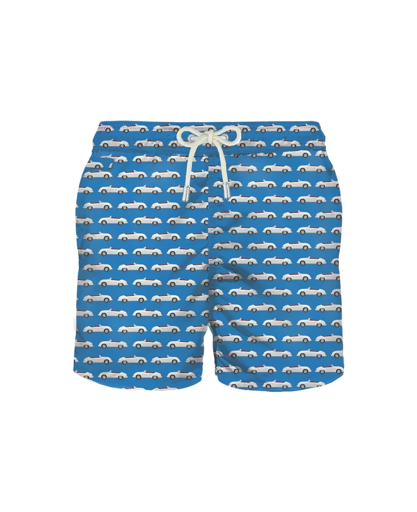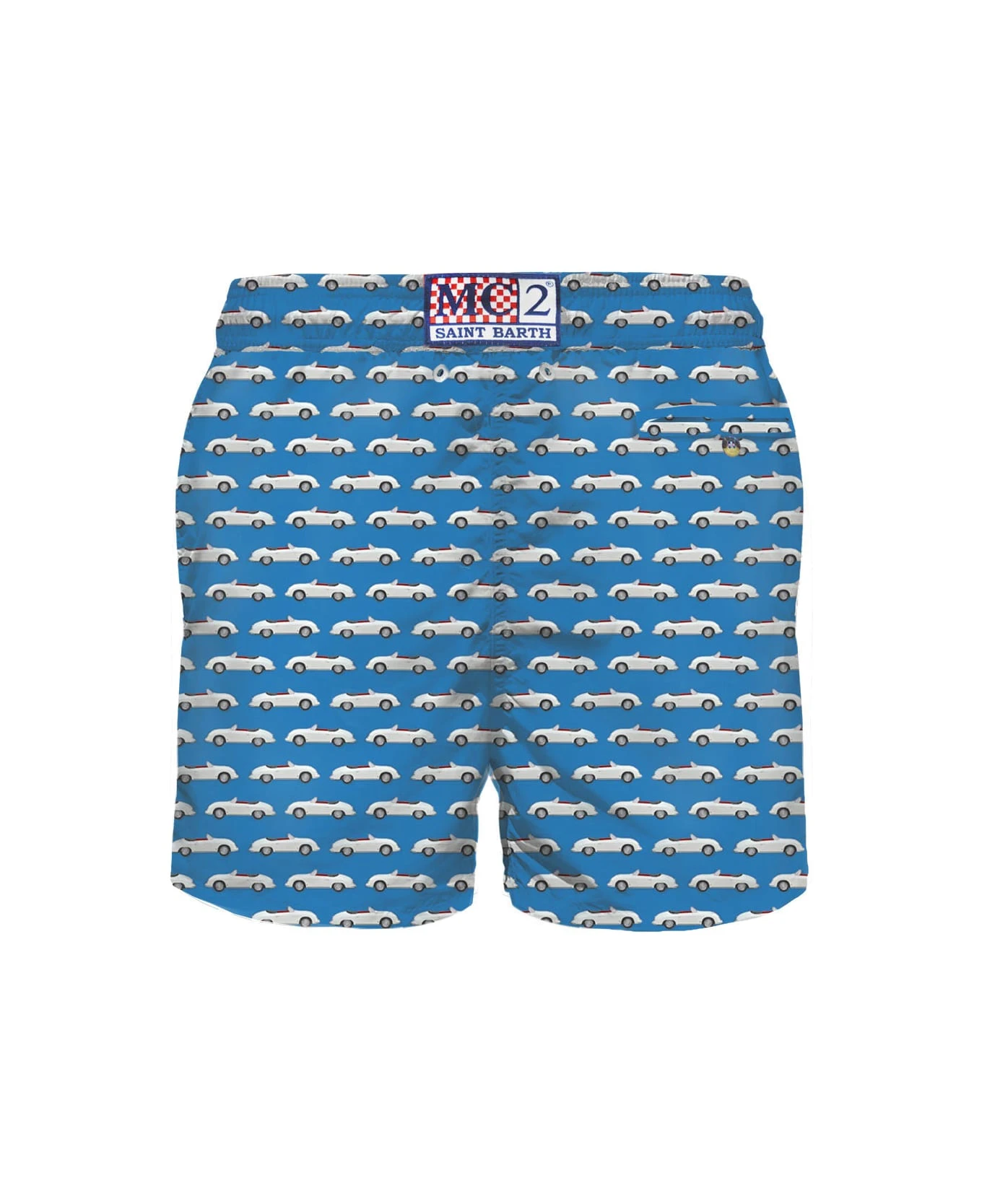 Discover the MC2 Saint Barth spring summer men’s collection! A lot of funny and colored print are waiting for you and your amazing holidays and summer! MC2 Saint Barth man’s classic swim short, white micro cars all over print on blue backcloth, light fabric, quick drying, mid-lenght, light net lining, elasticated waistband, drawstring fastening, front and back pocket with button.