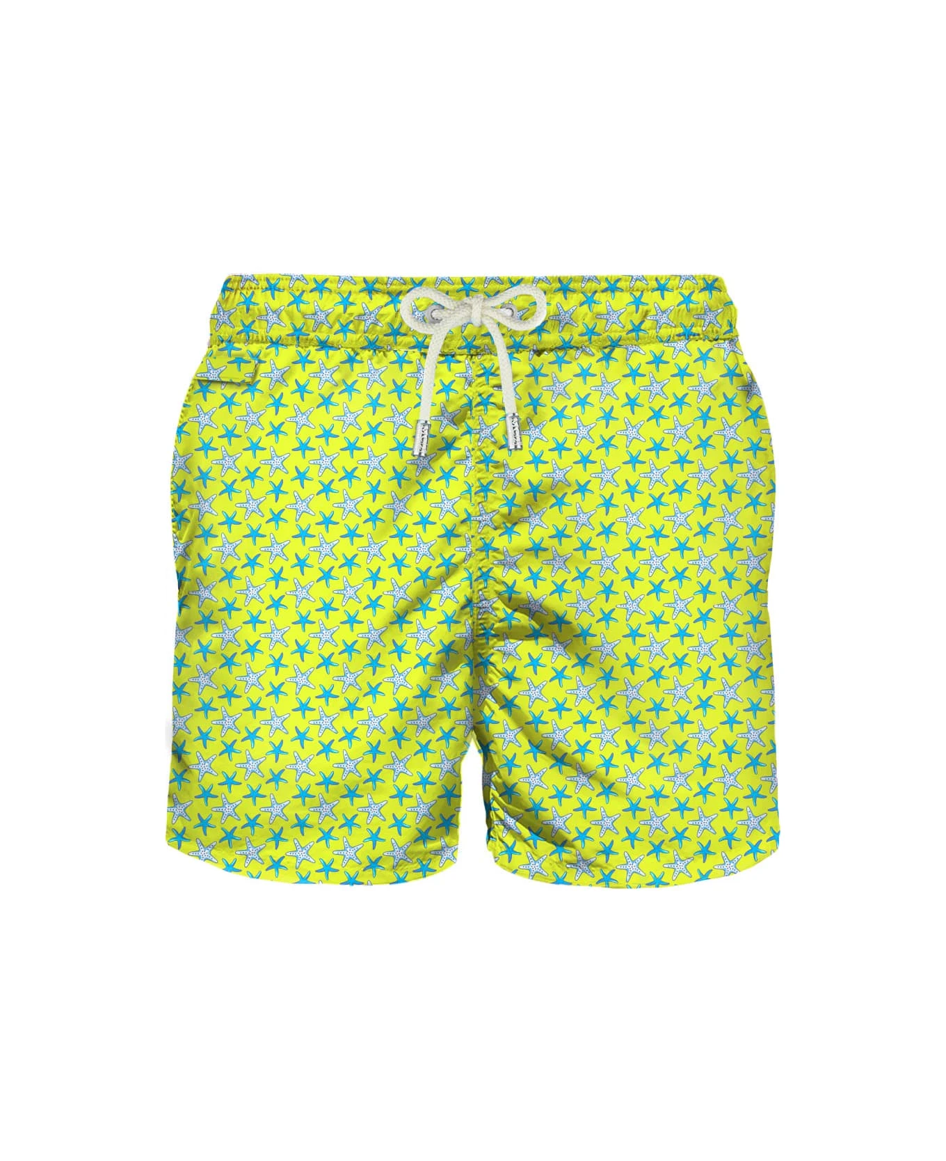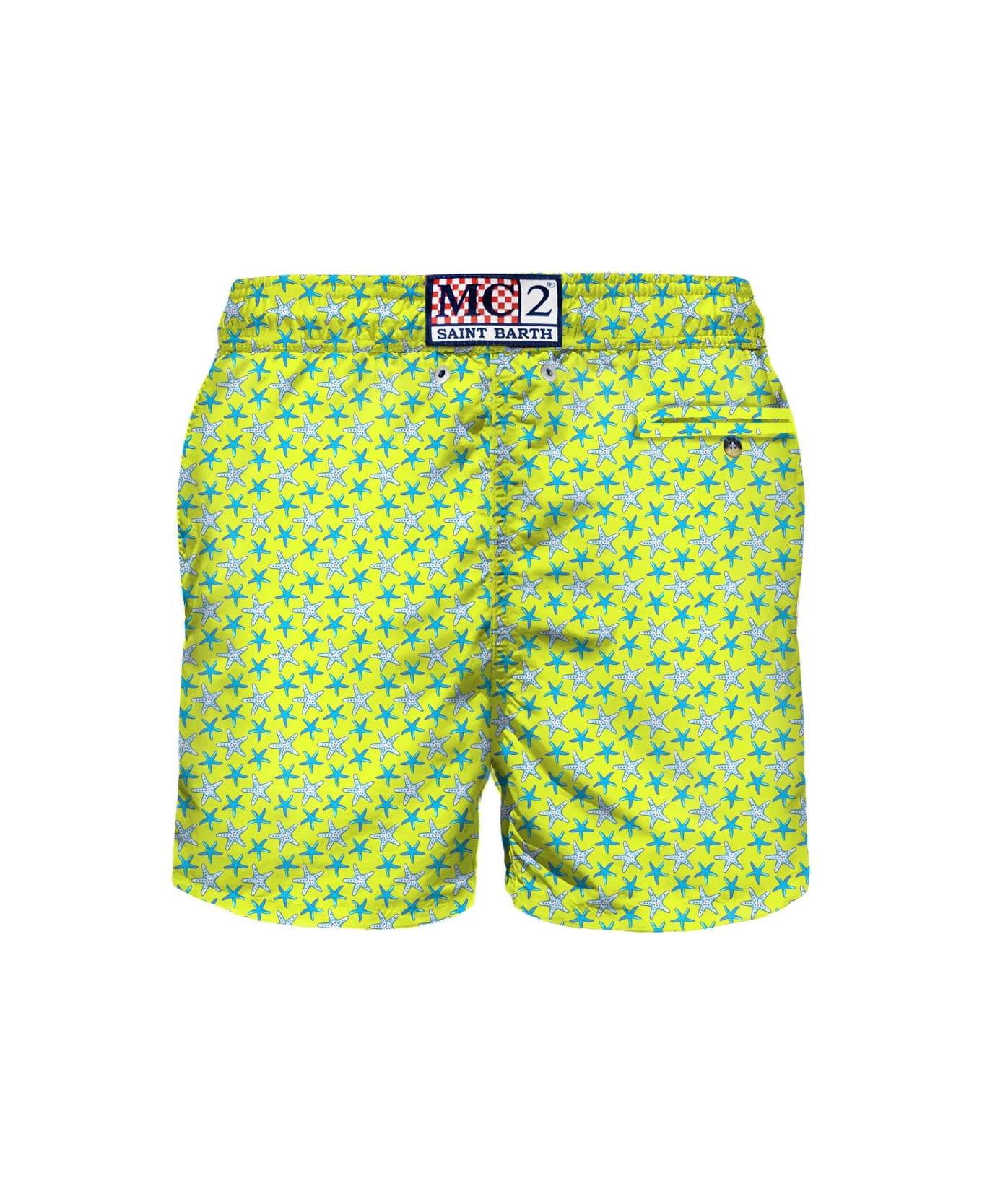 Discover the MC2 Saint Barth spring summer men’s collection! A lot of funny and colored print are waiting for you and your amazing holidays and summer! MC2 Saint Barth man’s classic swim short, light blue micro starfishes all over print on yellow fluo backcloth, light fabric, quick drying, mid-lenght, light net lining, elasticated waistband, drawstring fastening, front and back pocket with button. CARE INSTRUCTIONS
