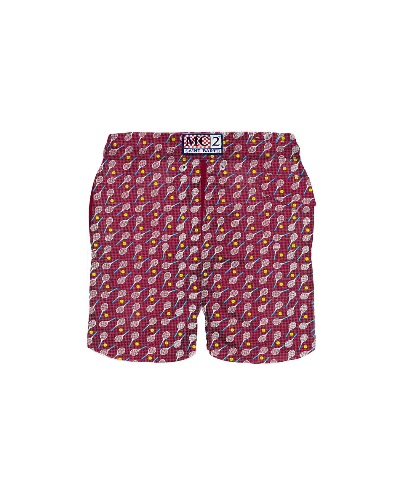 Tennis rackets and balls all over print on burgundy background