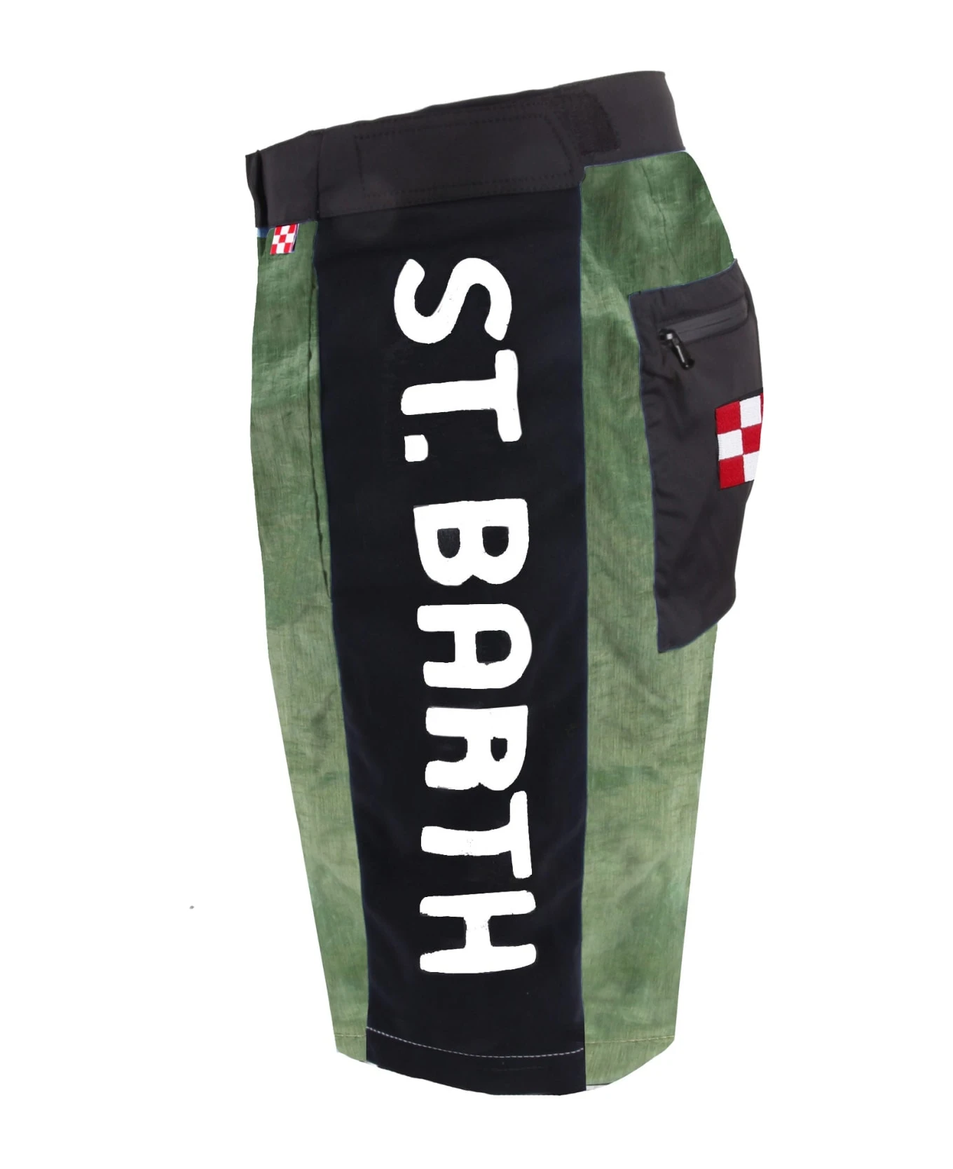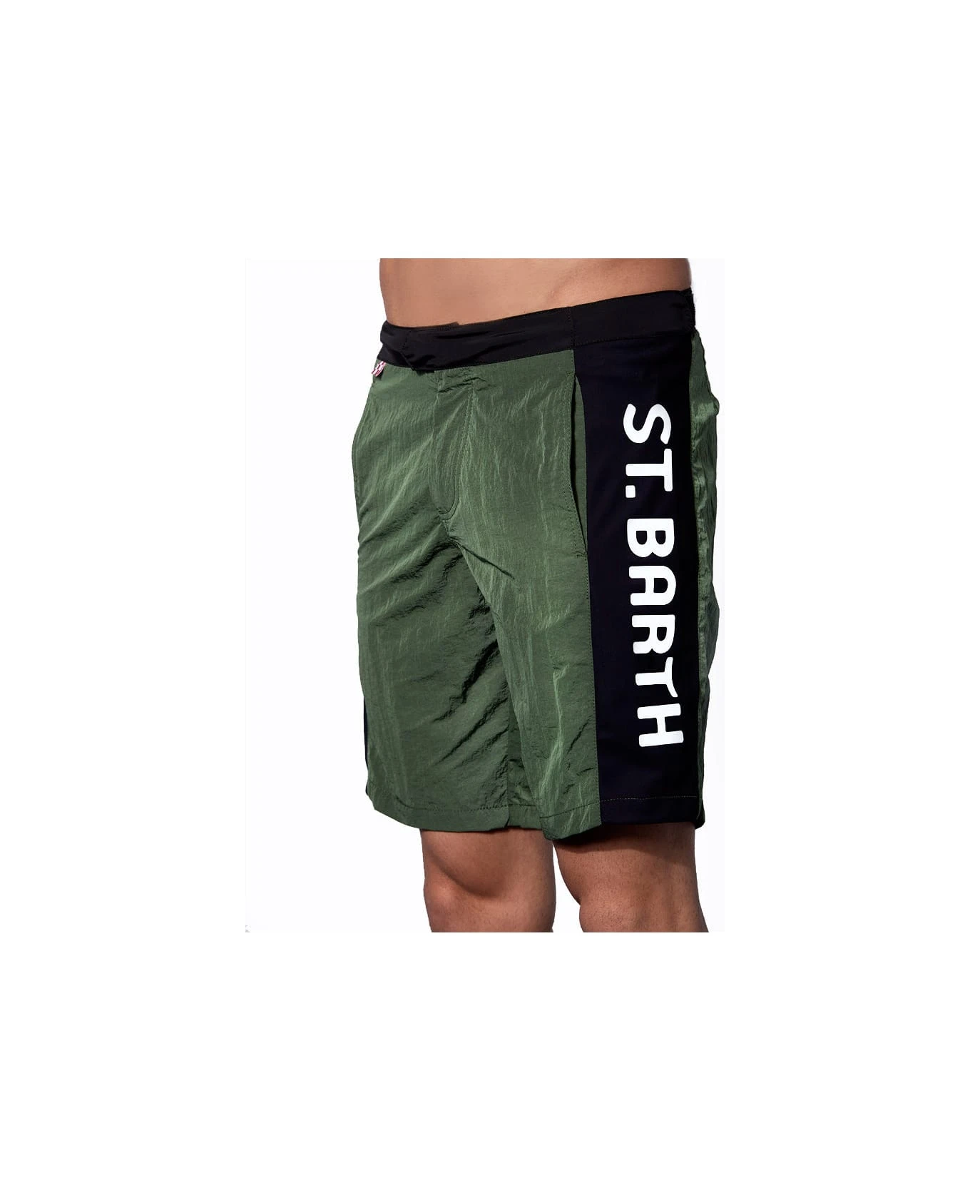 Discover the MC2 Saint Barth spring summer men’s collection! A lot of funny and colored print are waiting for you and your amazing holidays and summer! MC2 Saint Barth man’s classic swim short, military green color, contrast lateral band with logo, waterproof zipped back pocket, quick drying, mid-lenght, light net lining, elasticated waistband, drawstring fastening, back pocket with button. CARE INSTRUCTIONS
