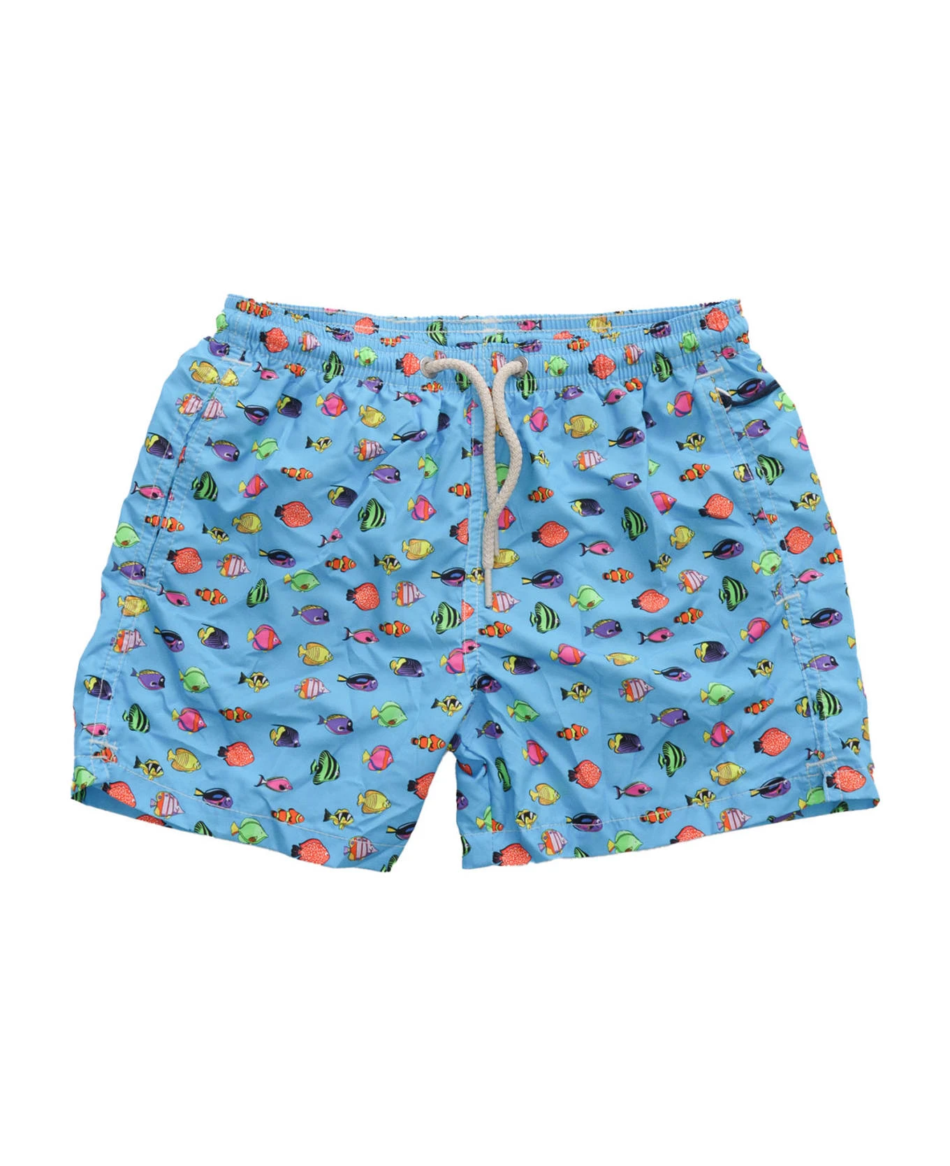 Technical fabric trunks, all-over print, contrasting drawstring, side pockets, back pocket, logo