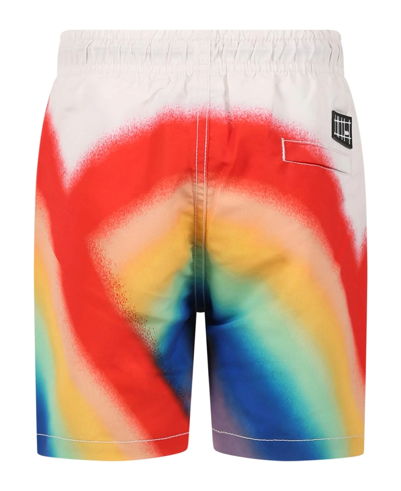 Multicolor swim boxer, with elastic waistband and drawstring. It is embellished with logo patch on the back and with “Molo since 2003” writing on the front, for the 20th anniversary of the brand.