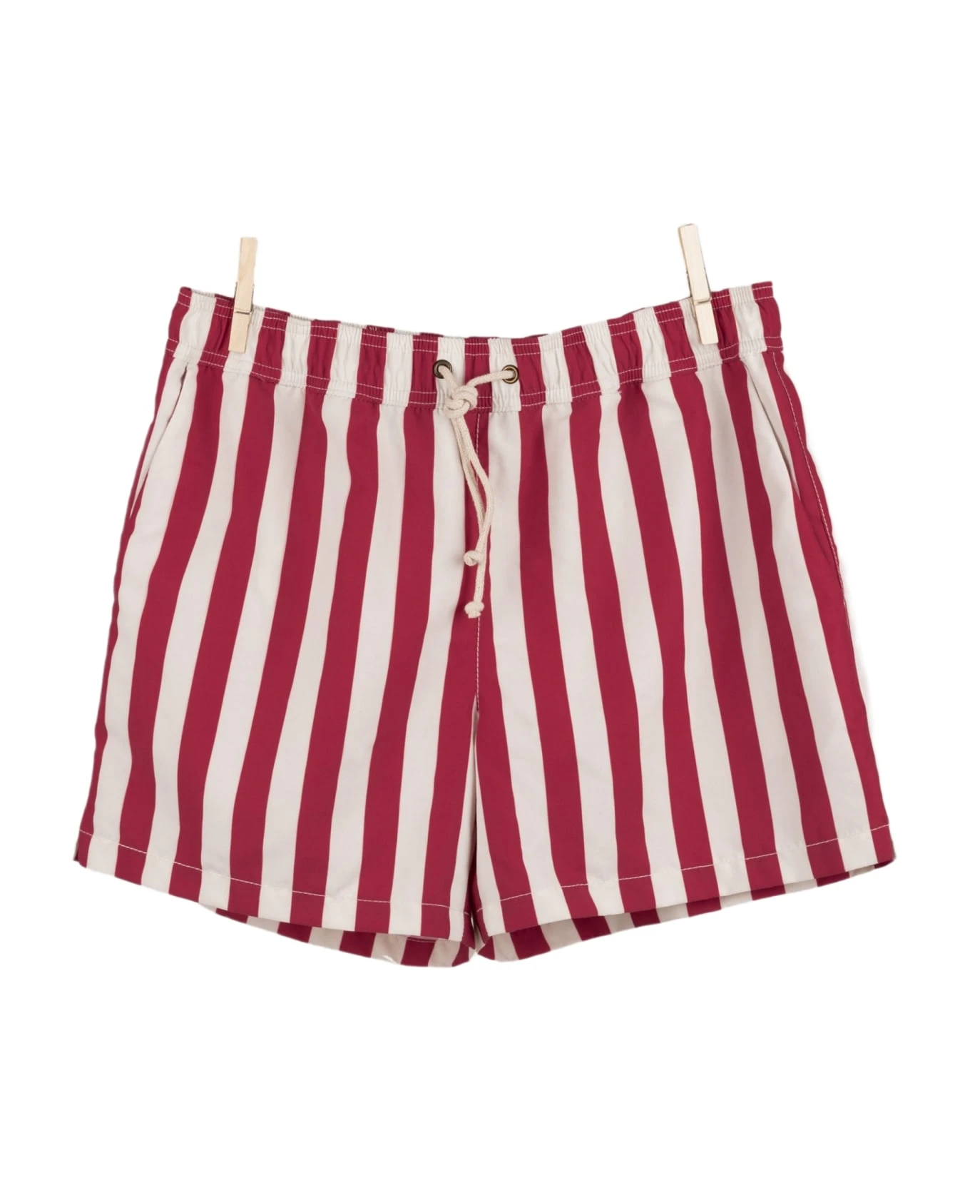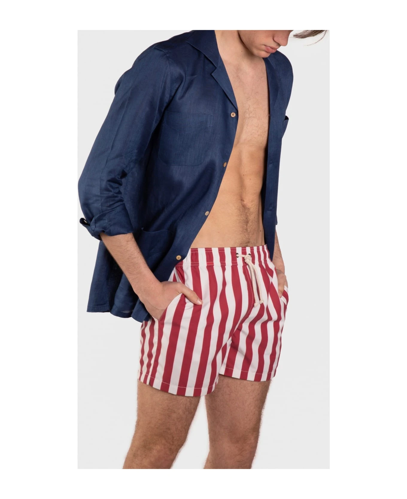 The classic swim shorts were redesigned for a more elegant, tailored look and a comfortable fit. Made from soft, brushed fabric that is quick-drying and has a distinctive cotton-feel. Tying-cord made from braided nautical rope in unbleached cotton. Made in Italy.
