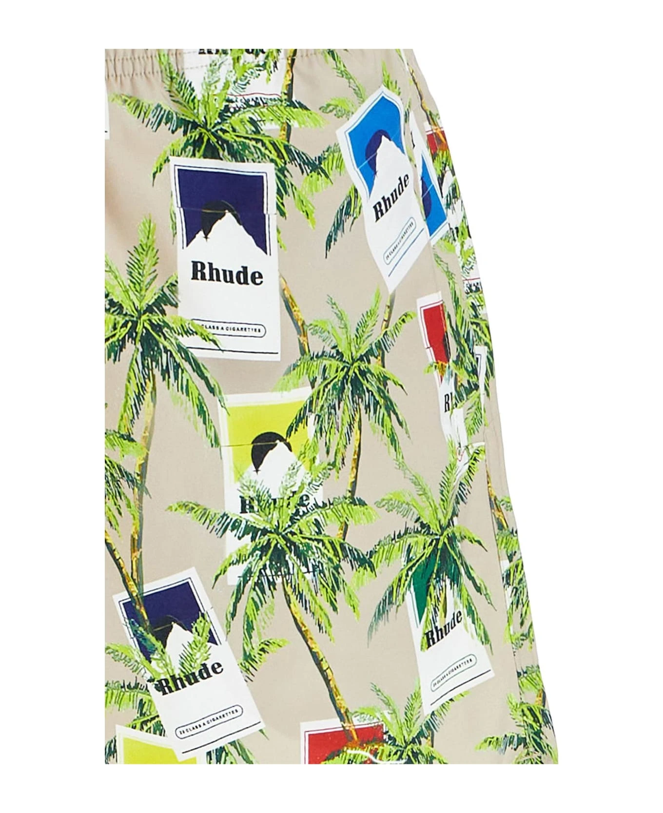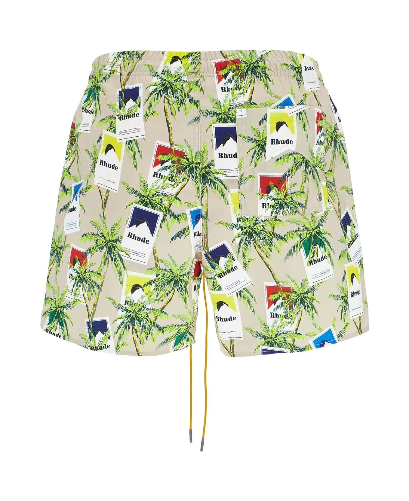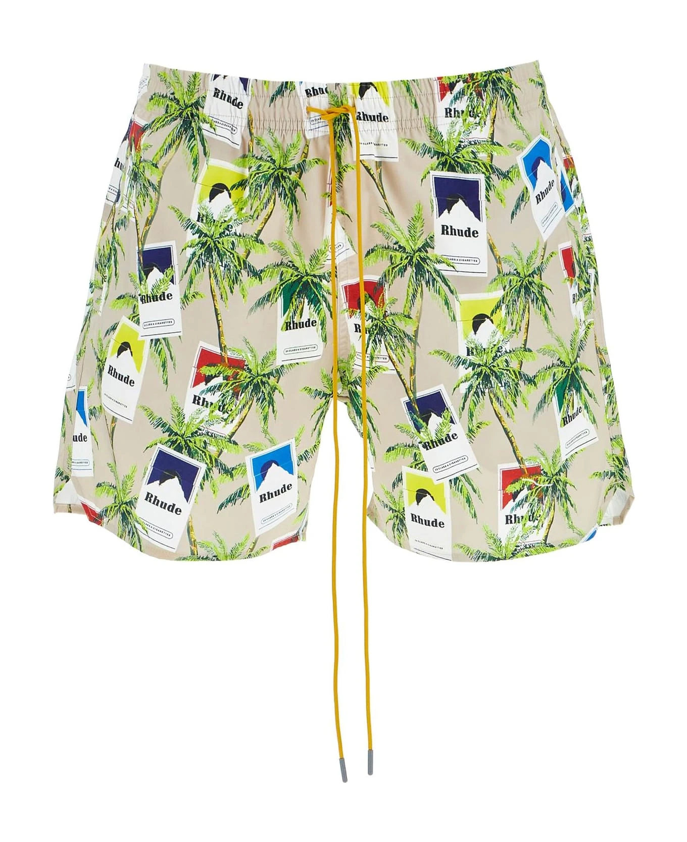 Rhude swim trunks made from technical fabric with an all-over Cigarettes print. Finished with an elasticated waistband and the signature mustard yellow drawstring, they feature two pockets at the sides and one at the back.