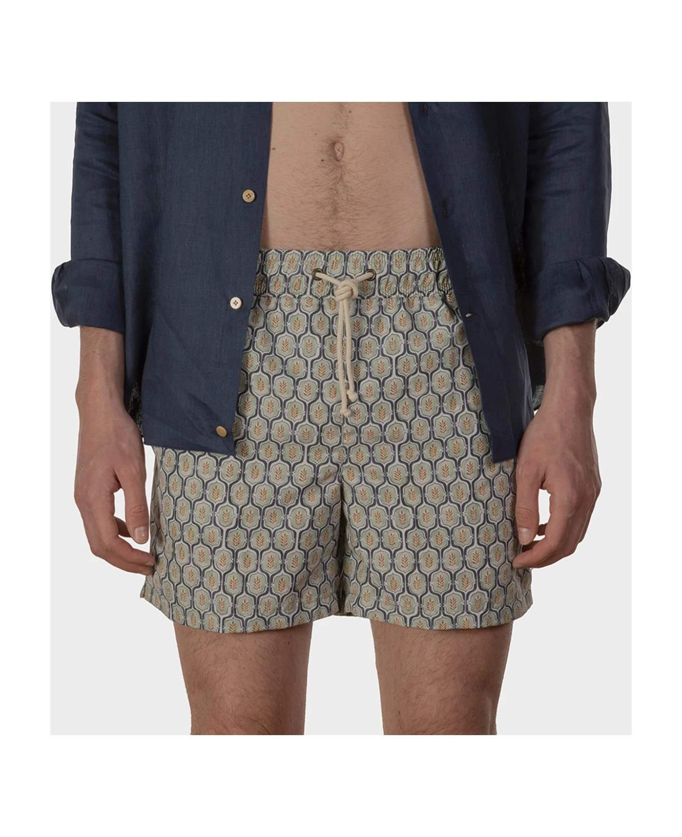 The classic swimsuit was redesigned for a more elegant, tailored look and a comfortable fit. Made from soft, brushed fabric that is quick-drying and has a distinctive cotton-feel. Tying-cord made from braided nautical rope in unbleached cotton. Pattern drawn by hand. Made in Italy.